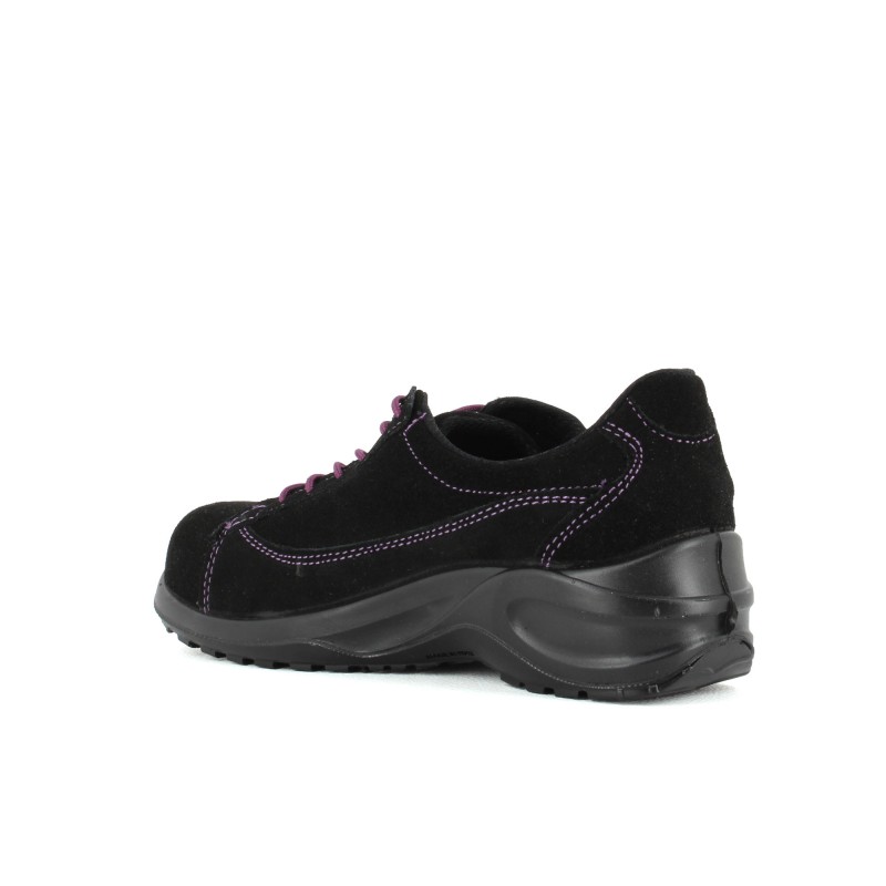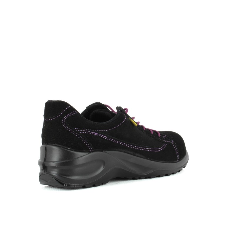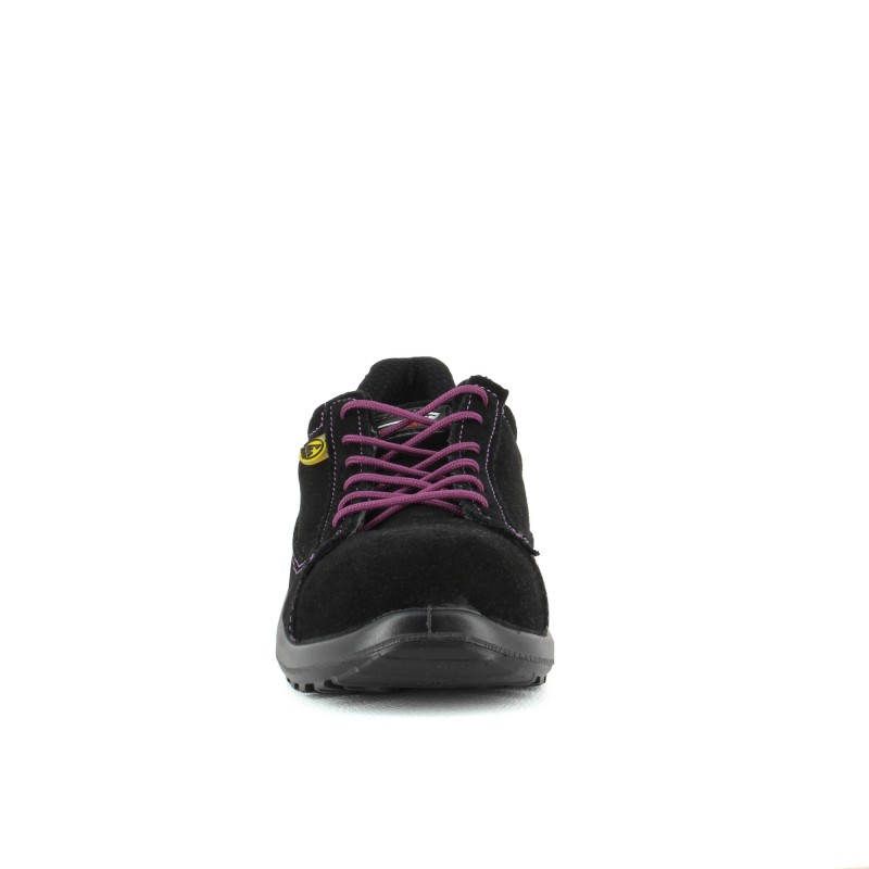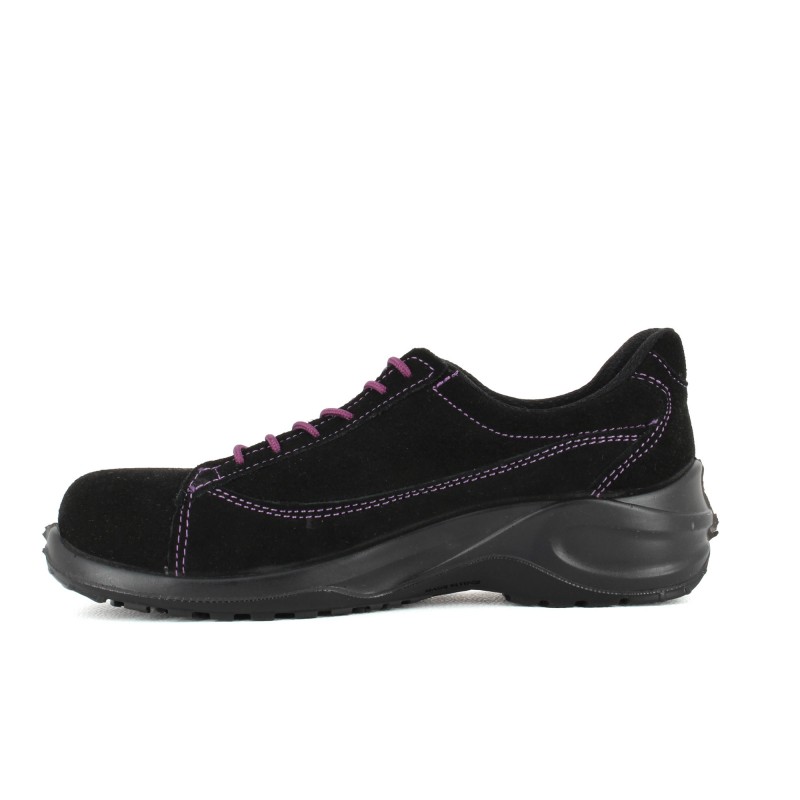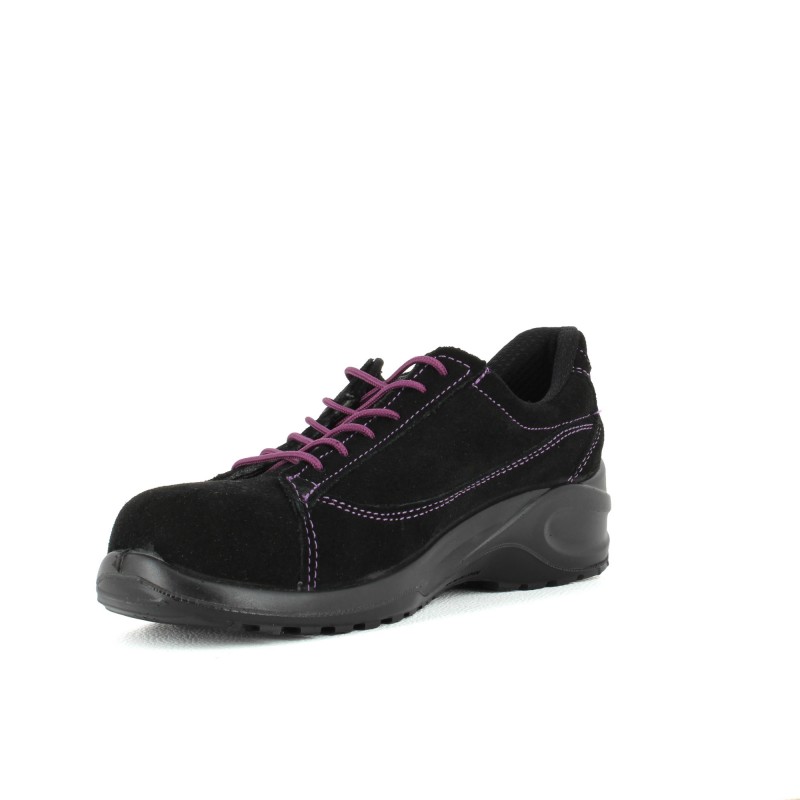 Cette chaussure de sécurité femme S3 est en cuir velours noir. Elle dispose de diverses caractéristiques :