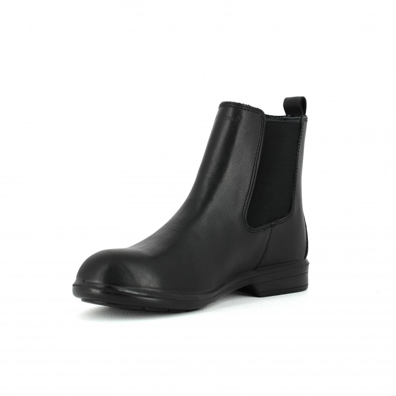Boots de sécurité pour femme en cuir noir d' excellente qualité. Elle dispose de diverses caractéristiques :