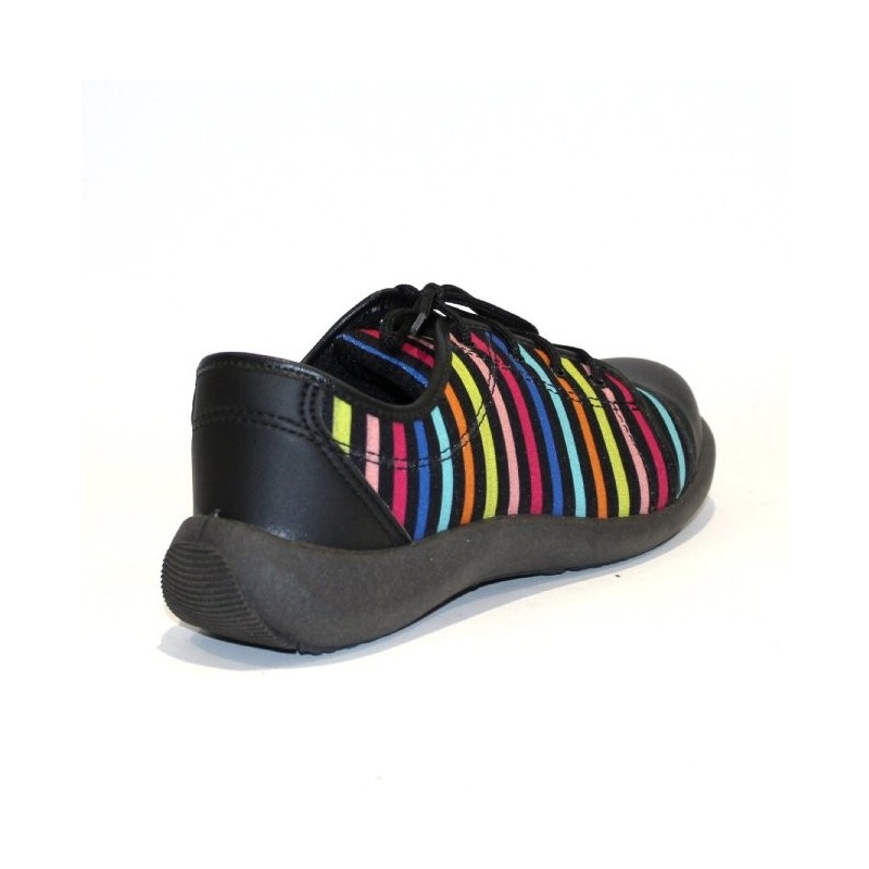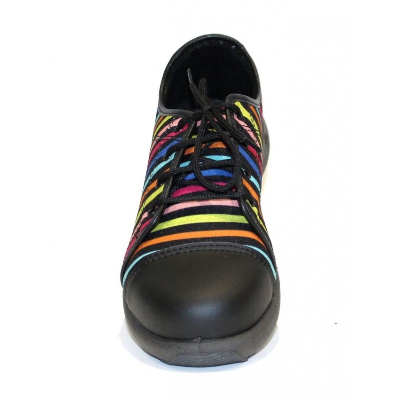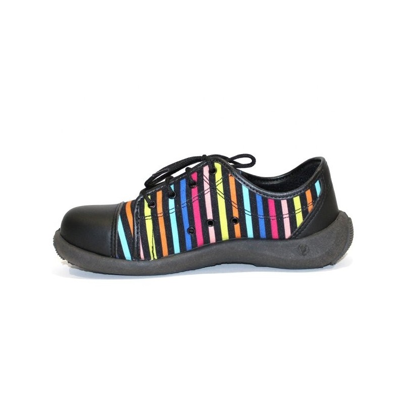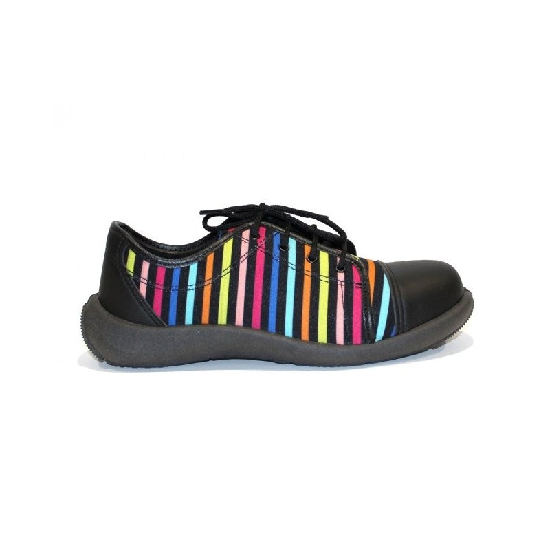 Chaussure de sécurité originale femme en tissu rayée et en microfibre Texlight. Cette chaussure de sécurité dispose de divers atouts :