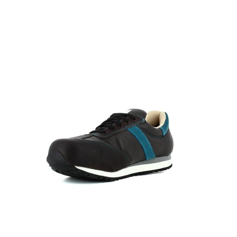 Chaussure de sécurité pour hommes en cuir très souple et très légère. Cette basket est composée d'un cuir pleine fleur grainé et hydrofuge avec une jolie bande latérale en finition de velours bleu. Cette "sneaker" de sécurité est extrêmement confortable avec une doublure textile tridimensionnel composée de nombreux trous d'aération. Ils offrent une respirabilité augmentée pour votre pied. La première de montage est en textile haute tenacité et la première de propreté est en mousse et textile. La semelle est de couleur blanche avec un insert gris. Cette semelle est amovible et est construite avec un renfort au talon pour une assise parfaite du pied. Elle est aussi composée de nombreuses aérations à l'avant du pied. Cette chaussure de sécurité est vraiment anti-transpiration. L'avant est constitué d'un embout de sécurité en composite offrant une excellente protection, une respiration accrue du pied et une légèreté améliorée pour cette basket de sécurité. La semelle externe est antidérapante SRC en caoutchouc nitrile avec des stries s'adaptant à tous les sols.