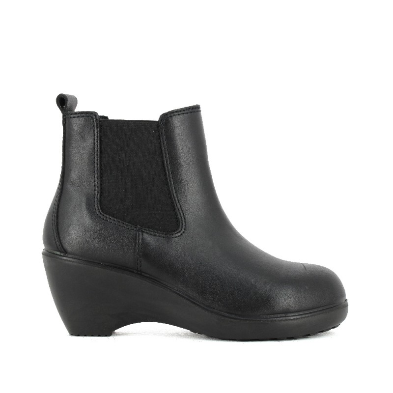 Chaussure boots de sécurité femme en cuir à talon.Cette superbe chaussure de sécurité talon compense est un produit d'excellente qualité en cuir grainé très résistant idéal pour toute activité. De plus cette bottine de sécurité femme elegante est très confortable avec une semelle de propreté amovible de qualité anti-transpiration et anti-bactérienne. De plus cette boots de sécurité femme à talon compensée dispose d'une semelle anti-perforation en kevlar pour une sécurité maximale. La semelle externe est anti-dérapante pour une stabilité maximum pour votre activité.