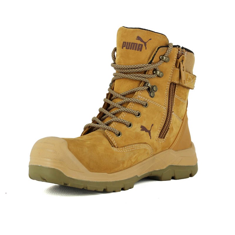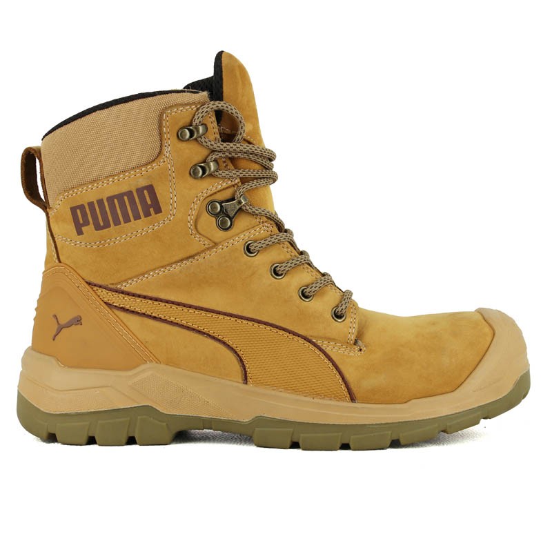 UNE CHAUSSURE DE SÉCURITÉ HAUTE PUMA BEIGE EN CUIR NUBUCK TRÈS RÉSISTANTE