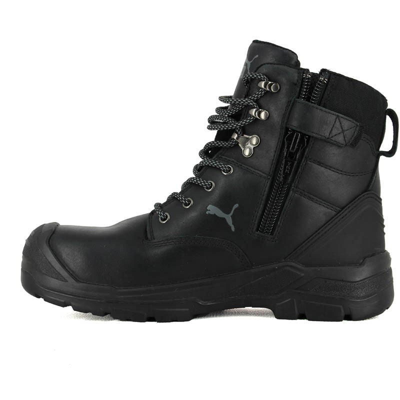 Vous travaillez dans un environnement difficile comme un chantier, voici la chaussure de sécurité idéale pour votre activité. La chaussure de sécurité PUMA noir CONQUEST BLK CTX HIGH est équipée d'un cuir noir pleine fleur huilé très résistant anti-pénétration d'eau. Cette chaussure de sécurité noire offre le confort le plus efficace avec un absorbeur de choc au talon et une semelle de confort respirante. L'intérieur de cette chaussure de sécurité Ultra respirante est réchauffante avec une doublure Coa Tex. La fermeture éclair YKK avec velcro vous permet une parfaite tenue de votre pied et de votre cheville mais également de déchausser facilement la chaussure. Cette chaussure de travail puma est très anti-dérapante sur tous les sols et également auto nettoyante ! La protection la plus complète est au sein de cette chaussure de sécurité homme !